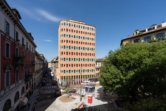 From the exterior facade to its raw interior, Iacurci signs an impressive art intervention on the soon-to-be-demolished tower in Largo Treves, Milan.