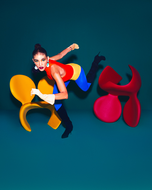 Machas photographer Elena Iv-Skaya keeps blurring the lines between fashion and design, teaming up again with Italian design brand Qeeboo on their 2022 catalogue.