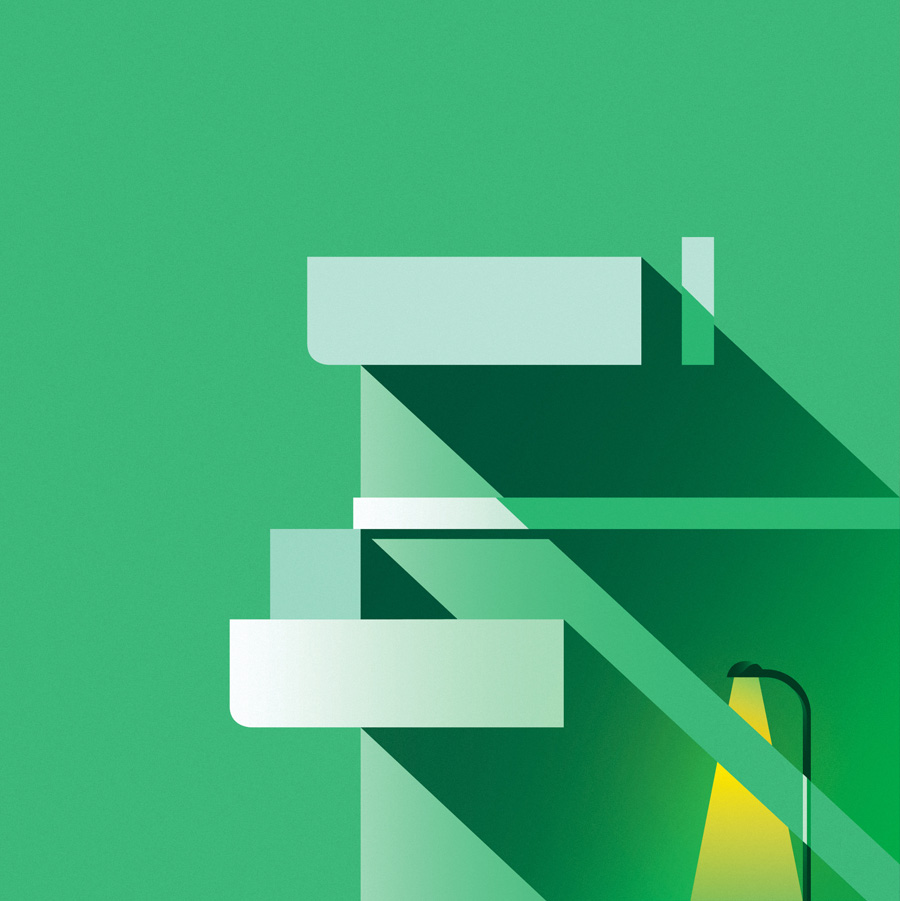 His artworks are a crisp form of storytelling, described with carefully chosen details. This absence of clutter, enhanced by his skilful use of long shadows and explosions of light create a visceral response in the viewer.